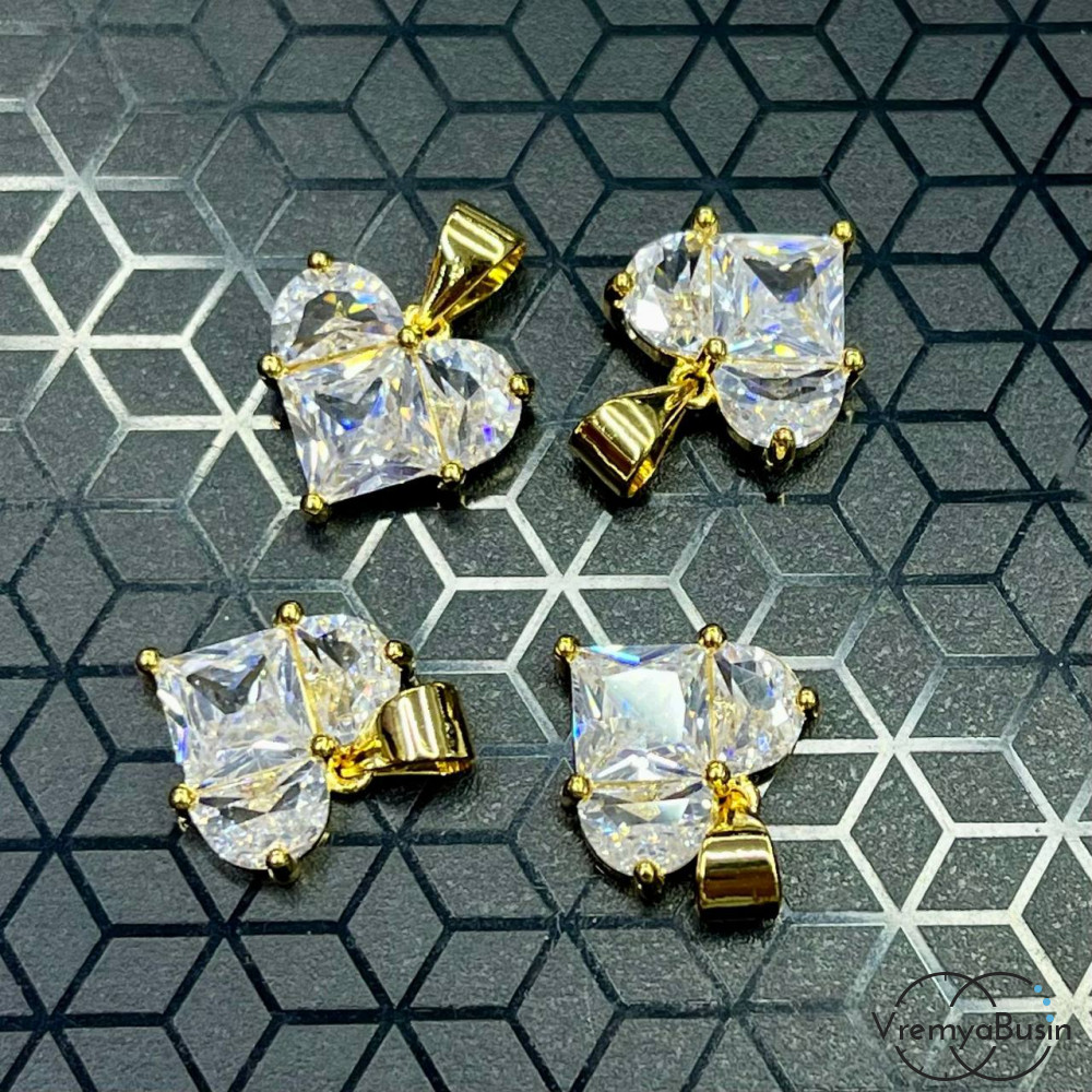 Подвеска с фианитами, сердце 12 мм, латунь с позолотой (1 шт.)