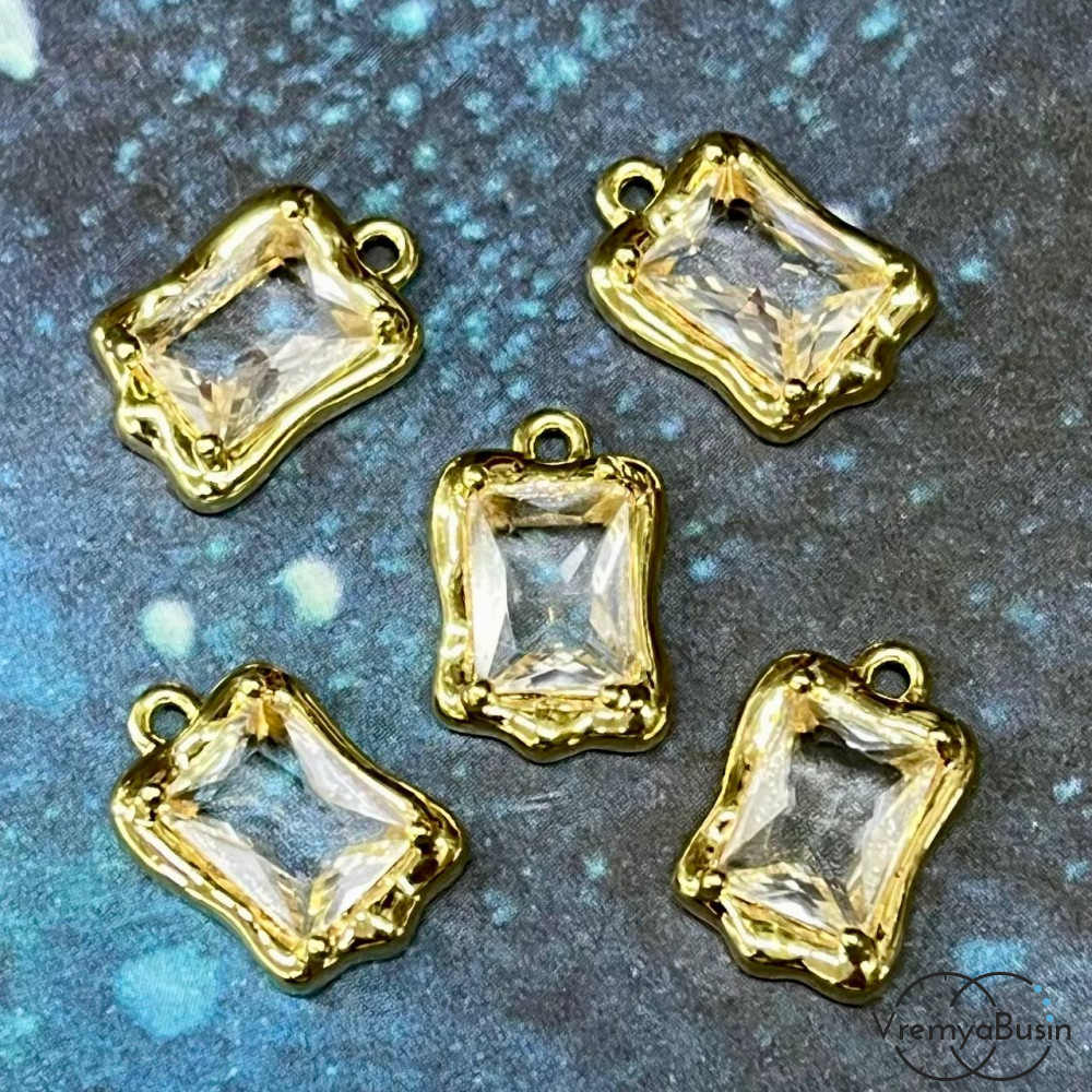 Подвеска с фианитом, прямоугольник 14х9 мм, латунь с позолотой (1 шт.)