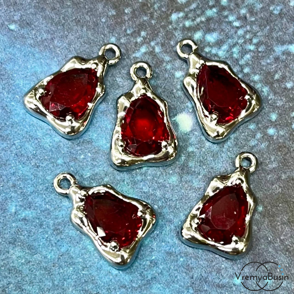 • Подвеска с фианитом, капля 14х9 мм, латунь с родиевым покрытием, цв. красный  (1 шт.)