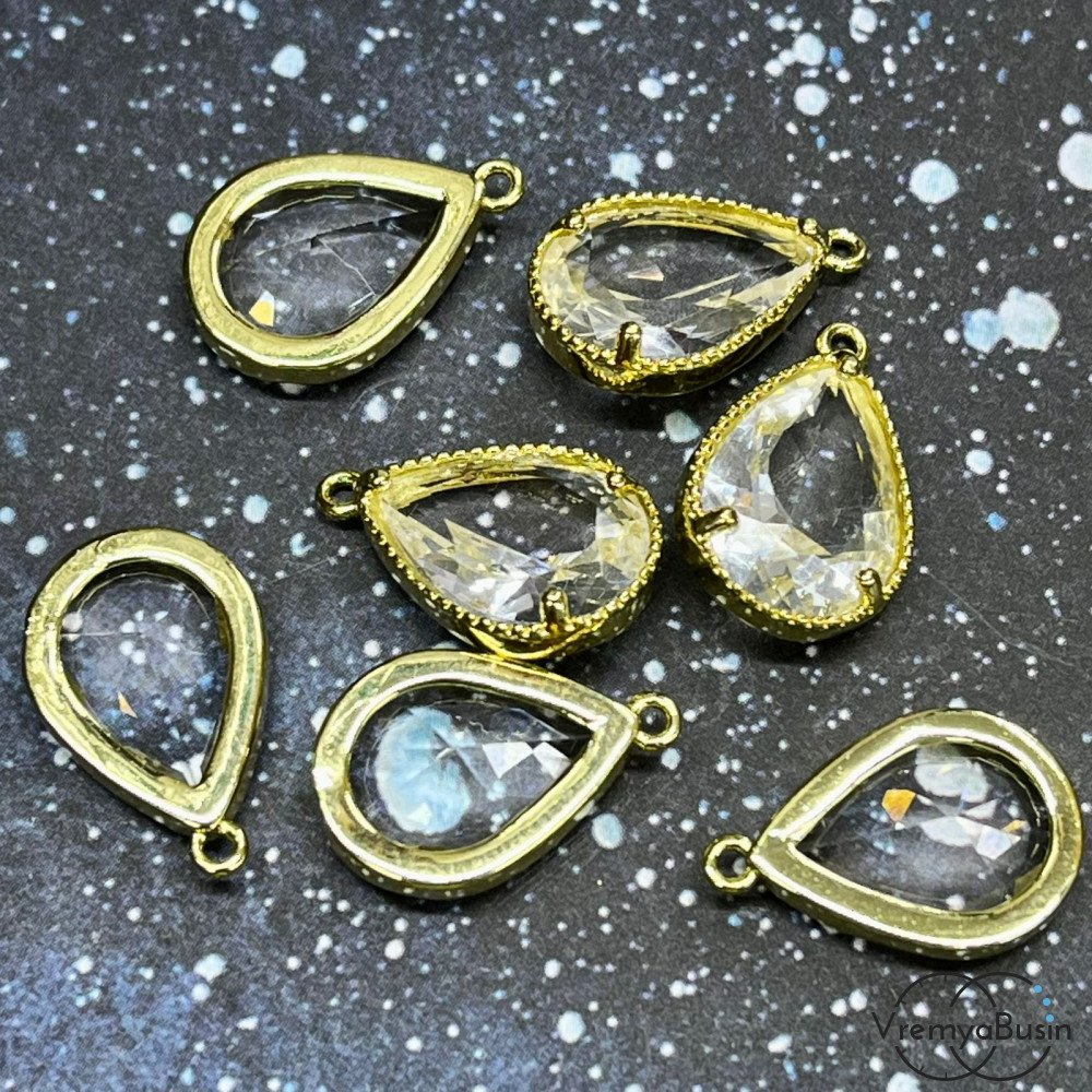 Подвеска с фианитом, капля 18х11 мм, латунь с позолотой (1 шт.)