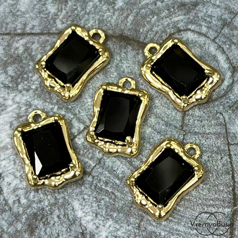 Подвеска с фианитом, прямоугольник 14х9 мм, латунь с позолотой, цв. черный (1 шт.)