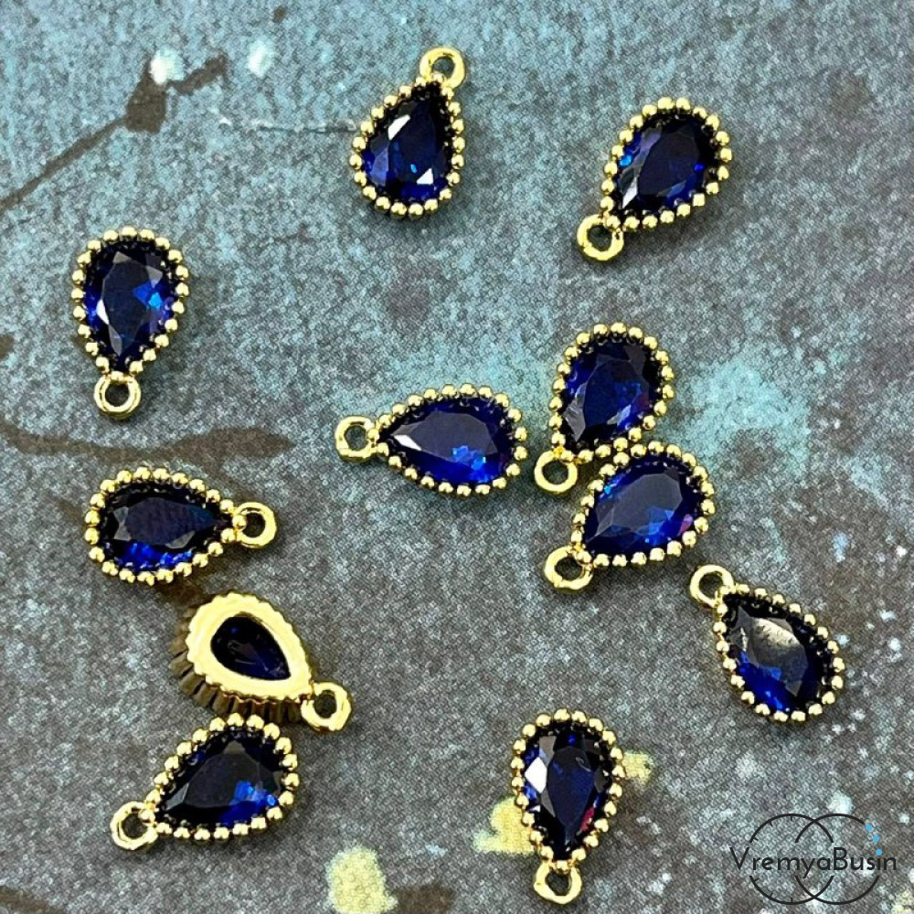 • Подвески с цветным фианитом, капля 5х8 мм, латунь с позолотой (упак. 2 шт.)