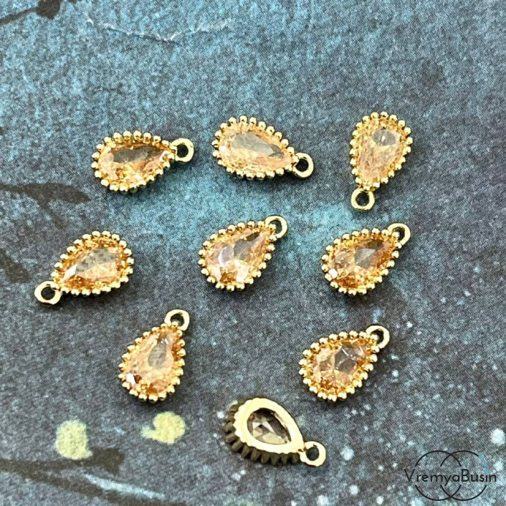 • Подвески с цветным фианитом, капля 5х8 мм, латунь с позолотой (упак. 2 шт.)
