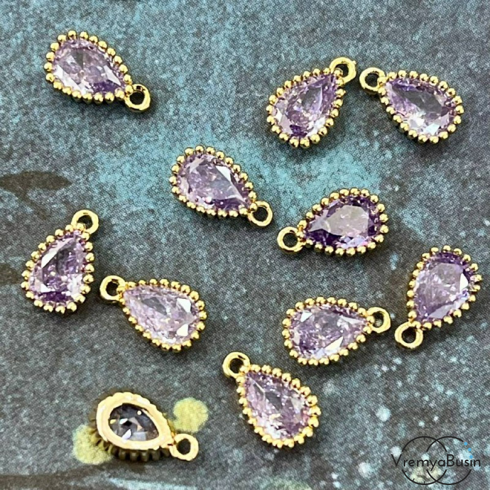 • Подвески с цветным фианитом, капля 5х8 мм, латунь с позолотой (упак. 2 шт.)