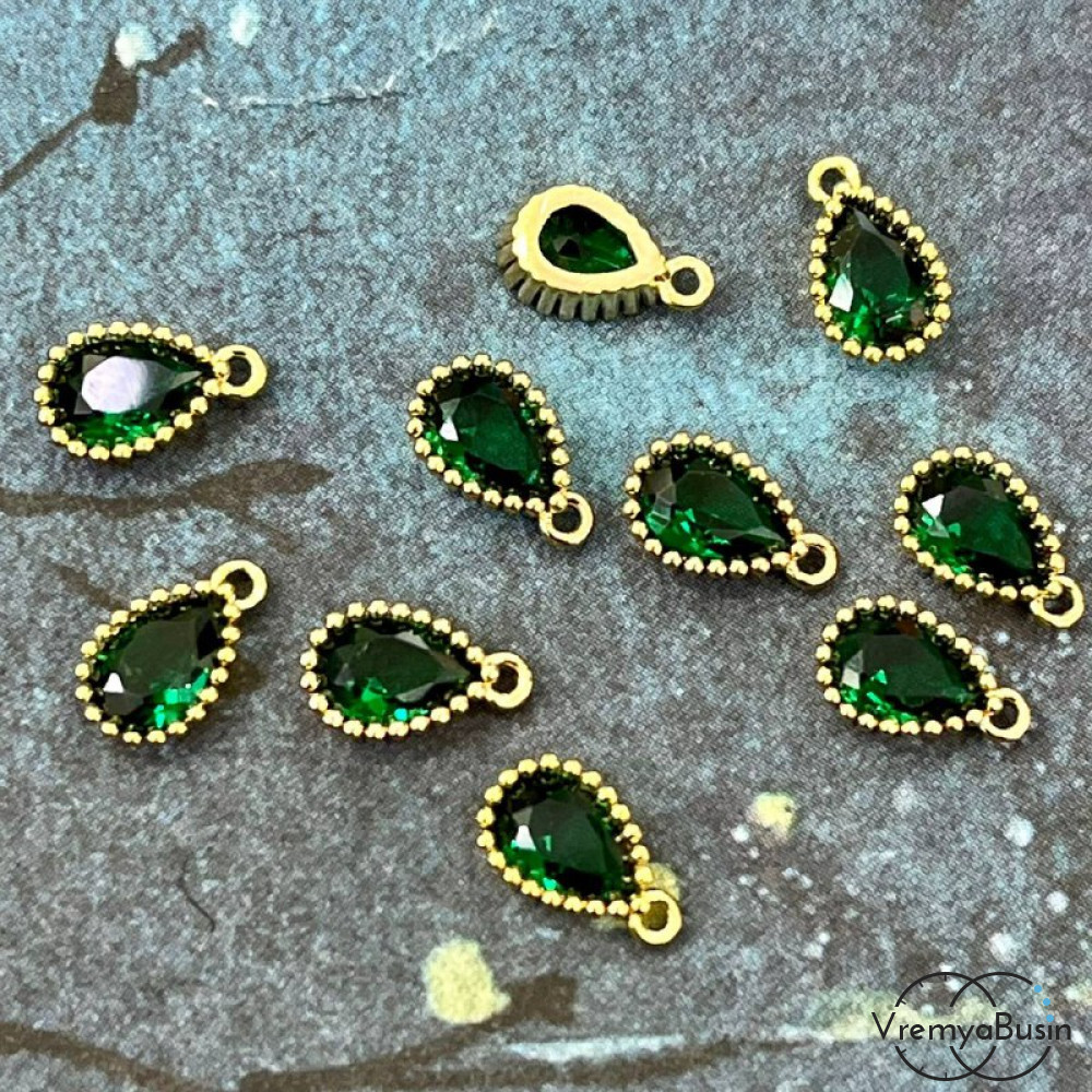 • Подвески с цветным фианитом, капля 5х8 мм, латунь с позолотой (упак. 2 шт.)