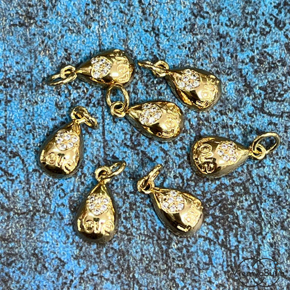 • Подвеска «Капля с сердцем», 13х7 мм, из латуни с позолотой и фианитами  (1 шт.)