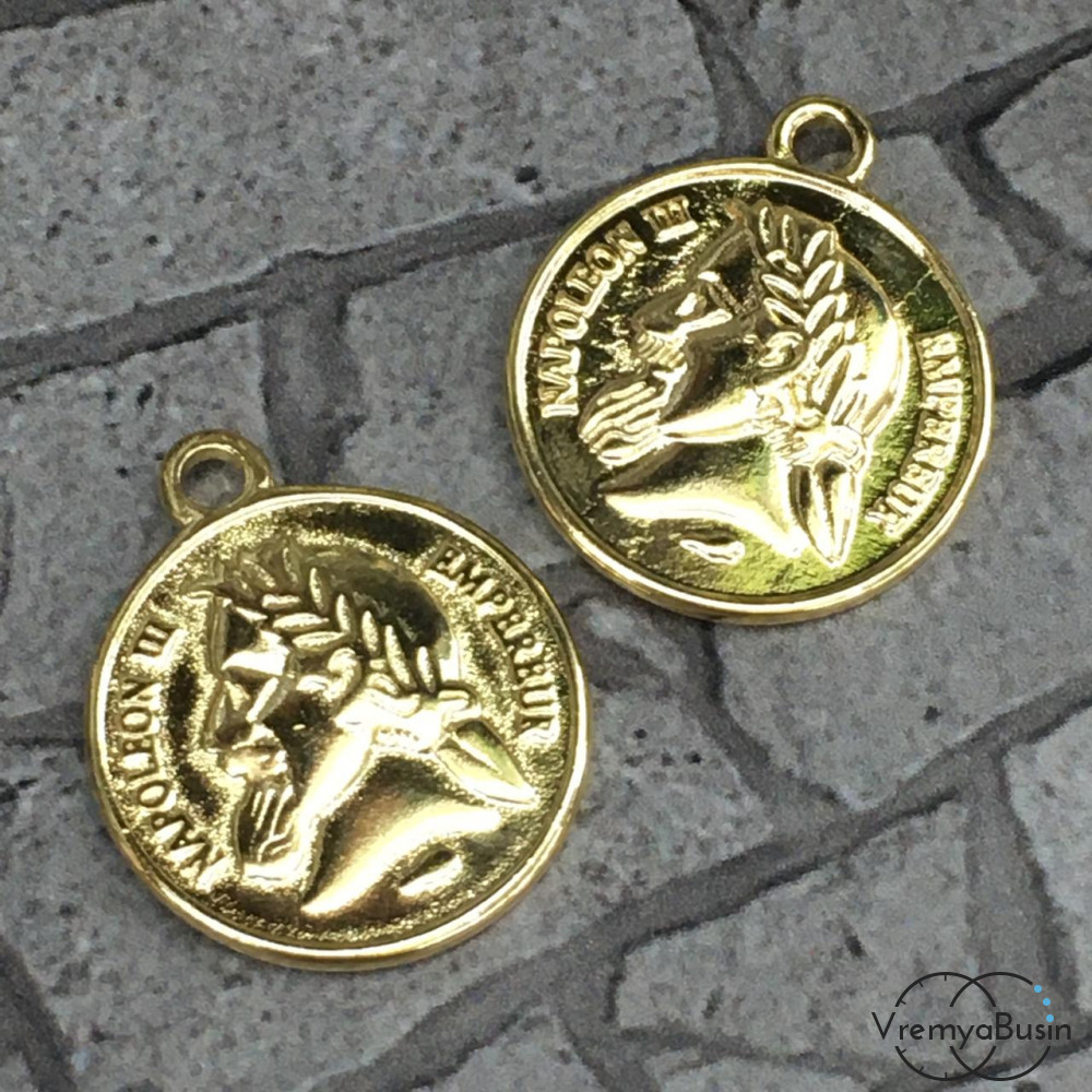 Подвеска "Монета" из латуни с позолотой (1 шт.)