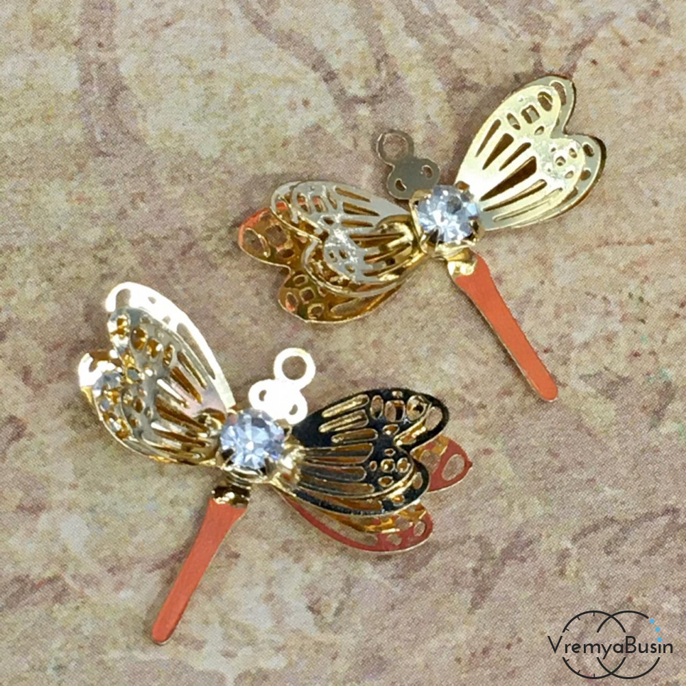 Подвеска "Стрекоза", латунь с позолотой (1 шт.)