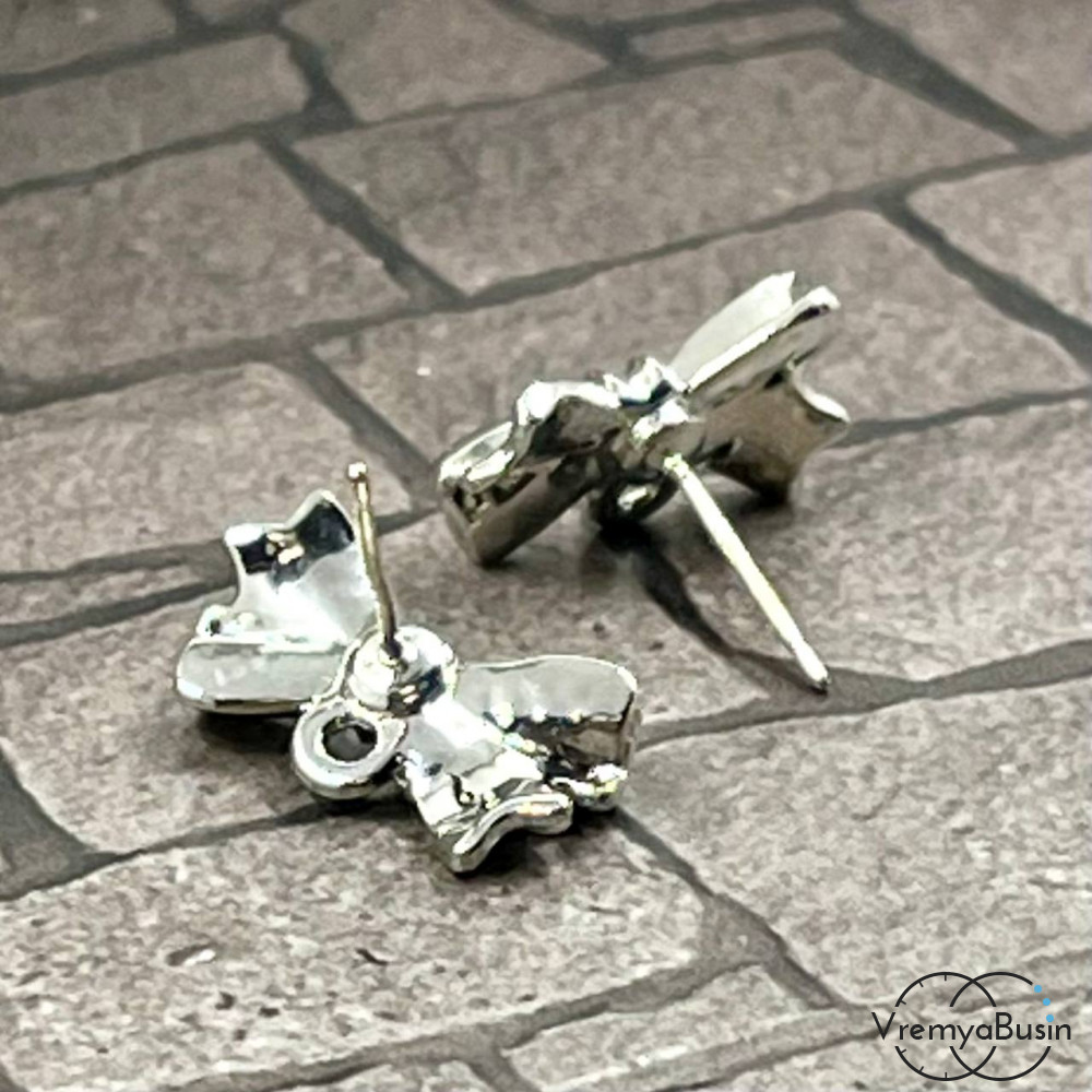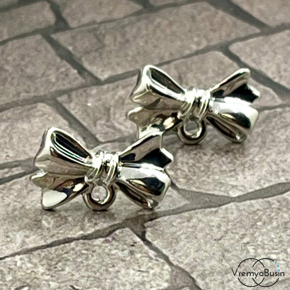 Швензы-гвоздики из цинкового сплава "Бантик", 17х10 мм, цв. серебро (1 пара)