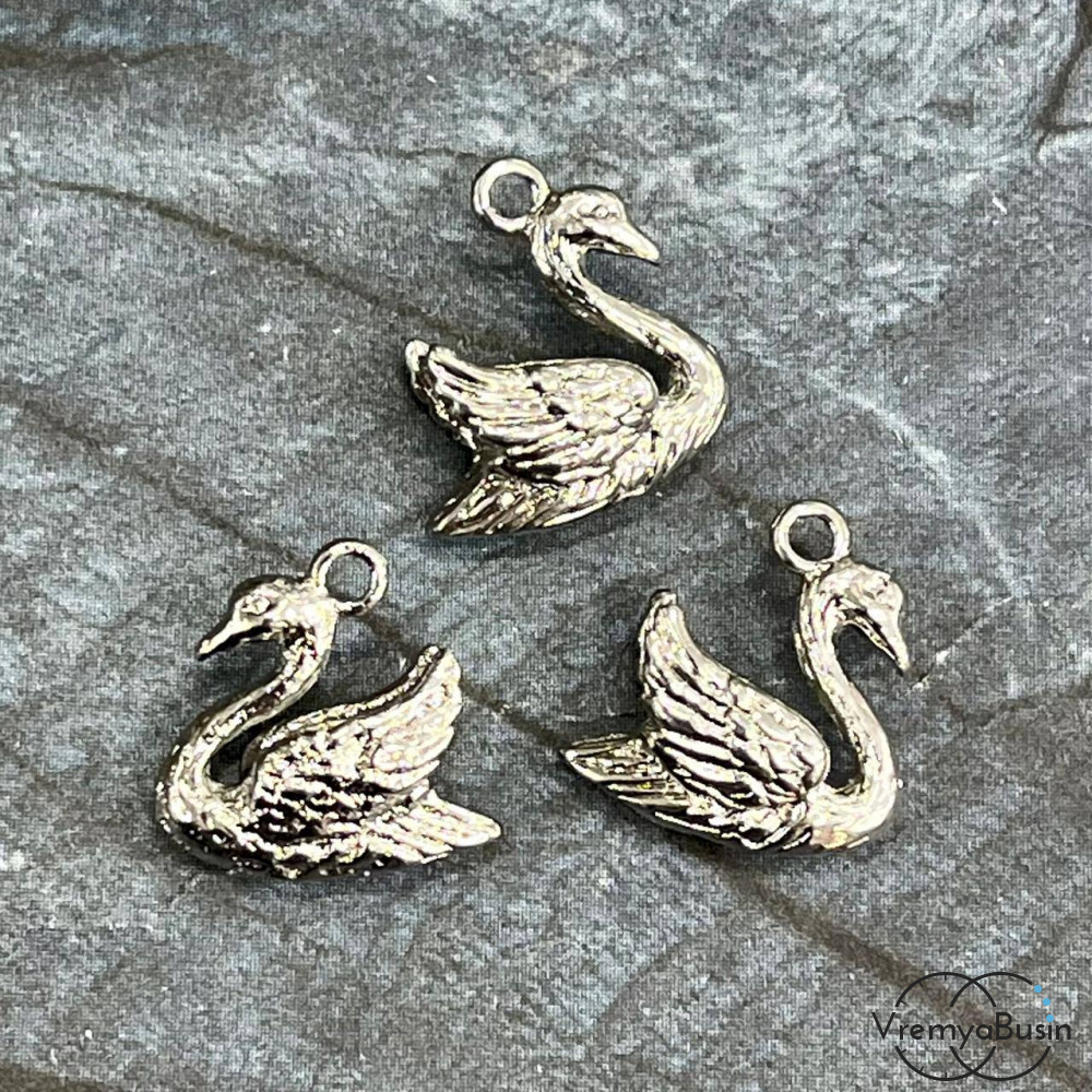 • Подвеска "Лебедь", 15х15х6 мм, латунь с родиевым покрытием (1 шт.)