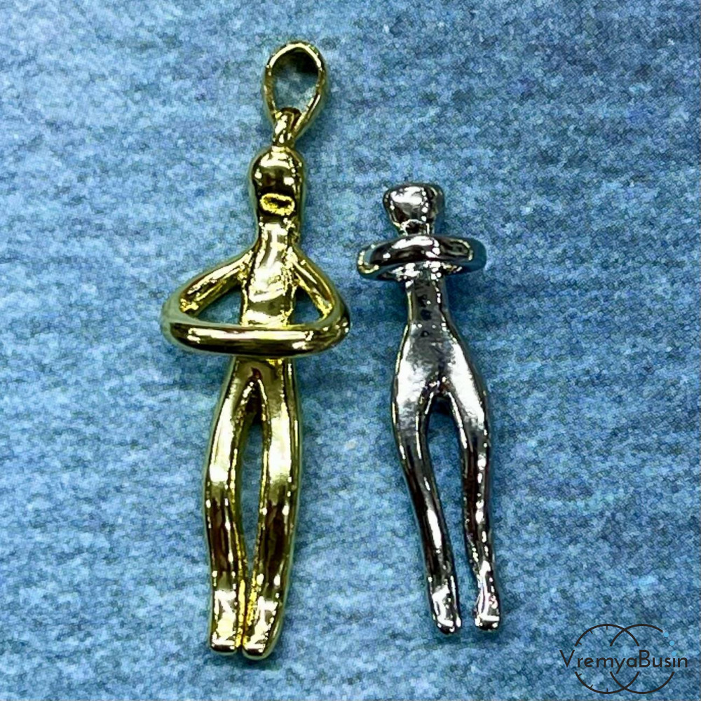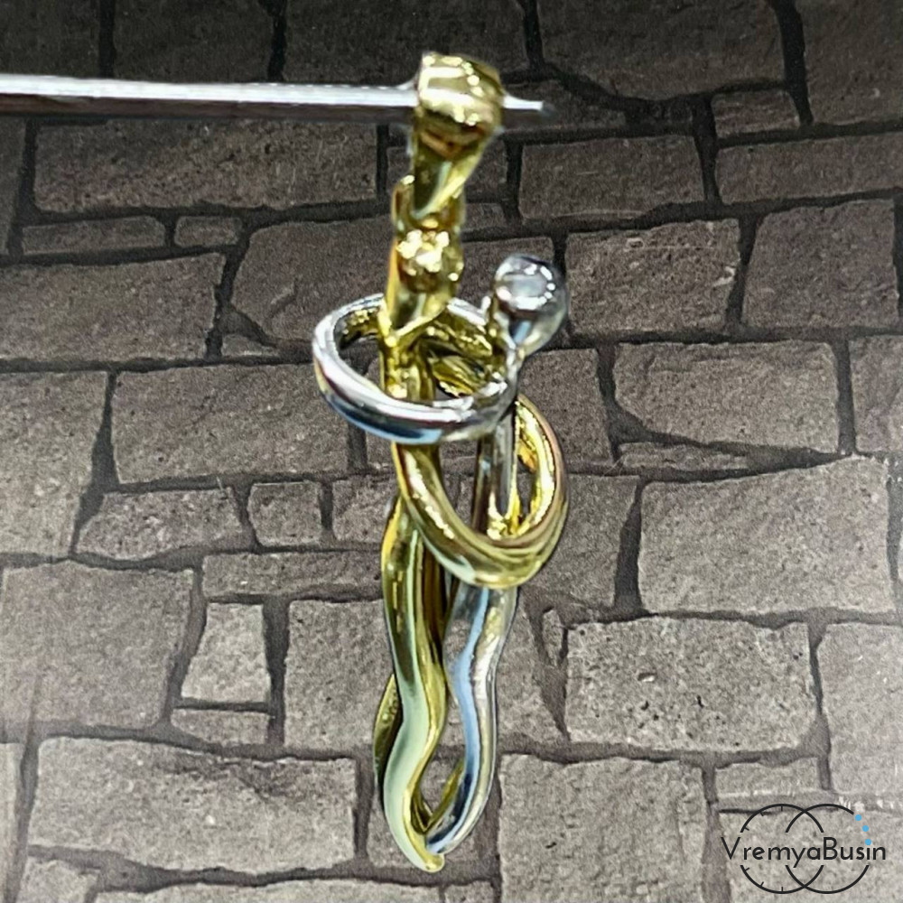 Подвеска "Пара влюбленных", ок. 28х8 мм, из латуни с покрытием биколор (1 шт.)