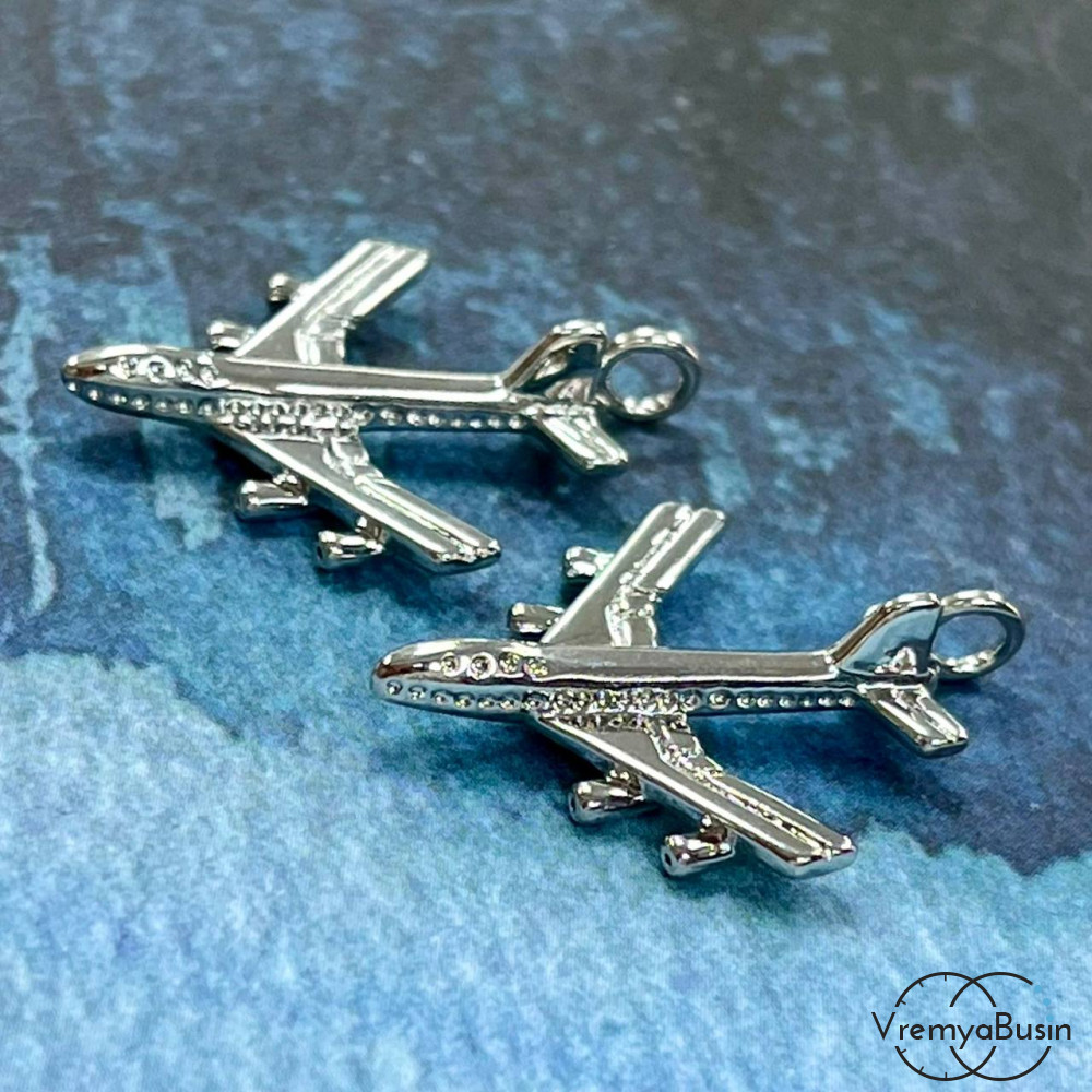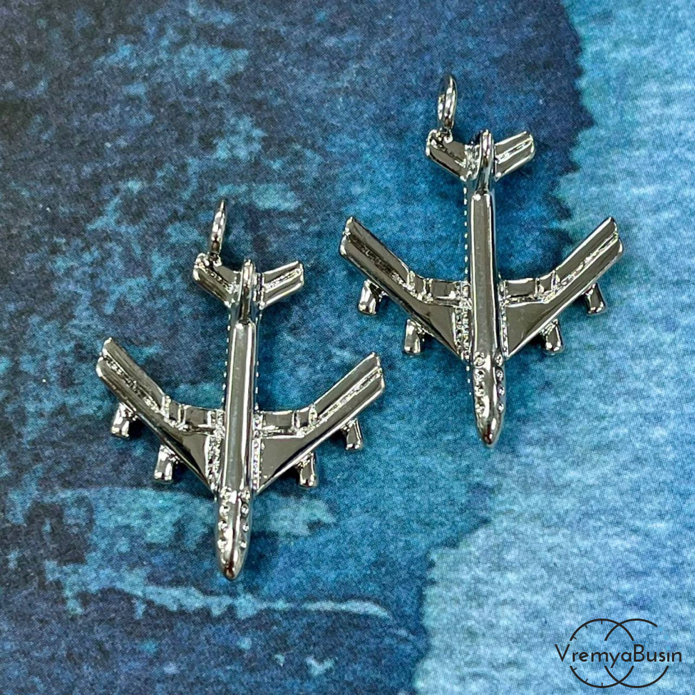 Подвеска "Самолет", 21х28 мм, из латуни с родиевым покрытием (1 шт.)