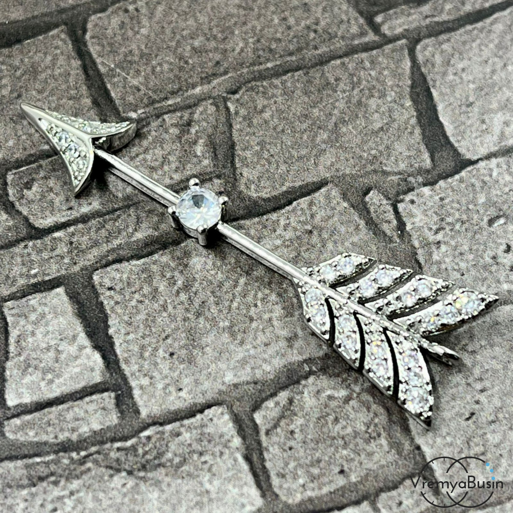 • Подвеска "Стрела", 13х48 мм, из латуни с родиевым покрытием и фианитами (1 шт.)