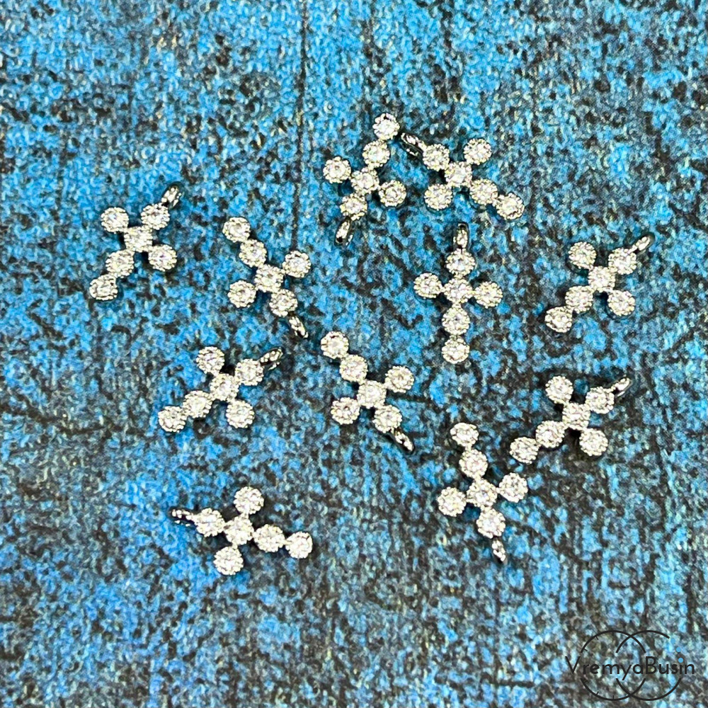 • Подвеска «Крест», 10х6 мм,  из латуни с родиевым покрытием и фианитами  (1 шт.)