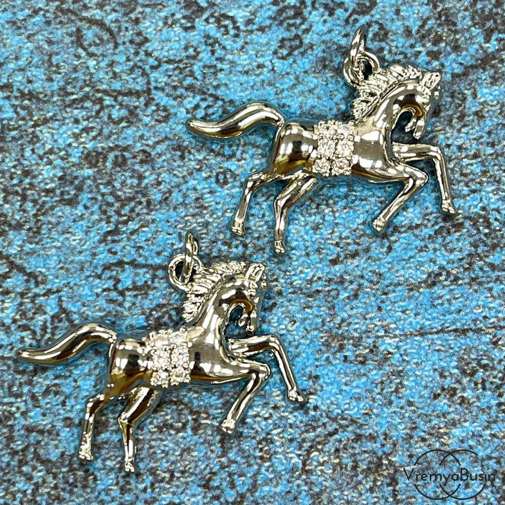 • Подвеска "Лошадь", 25х20 мм, из латуни с родиевым покрытием и фианитами (1 шт.)