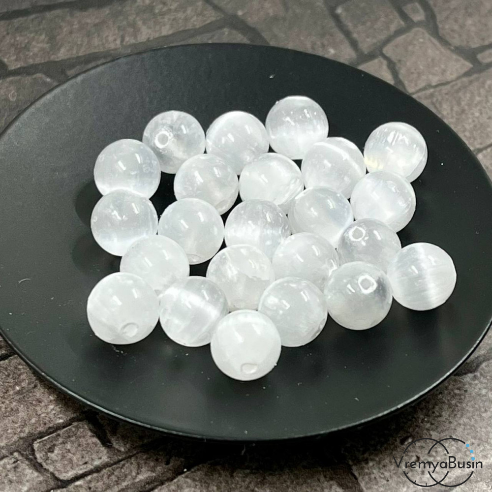 Селенит натур., шарик гладкий 8 мм, цв. белый (1 шт.)
