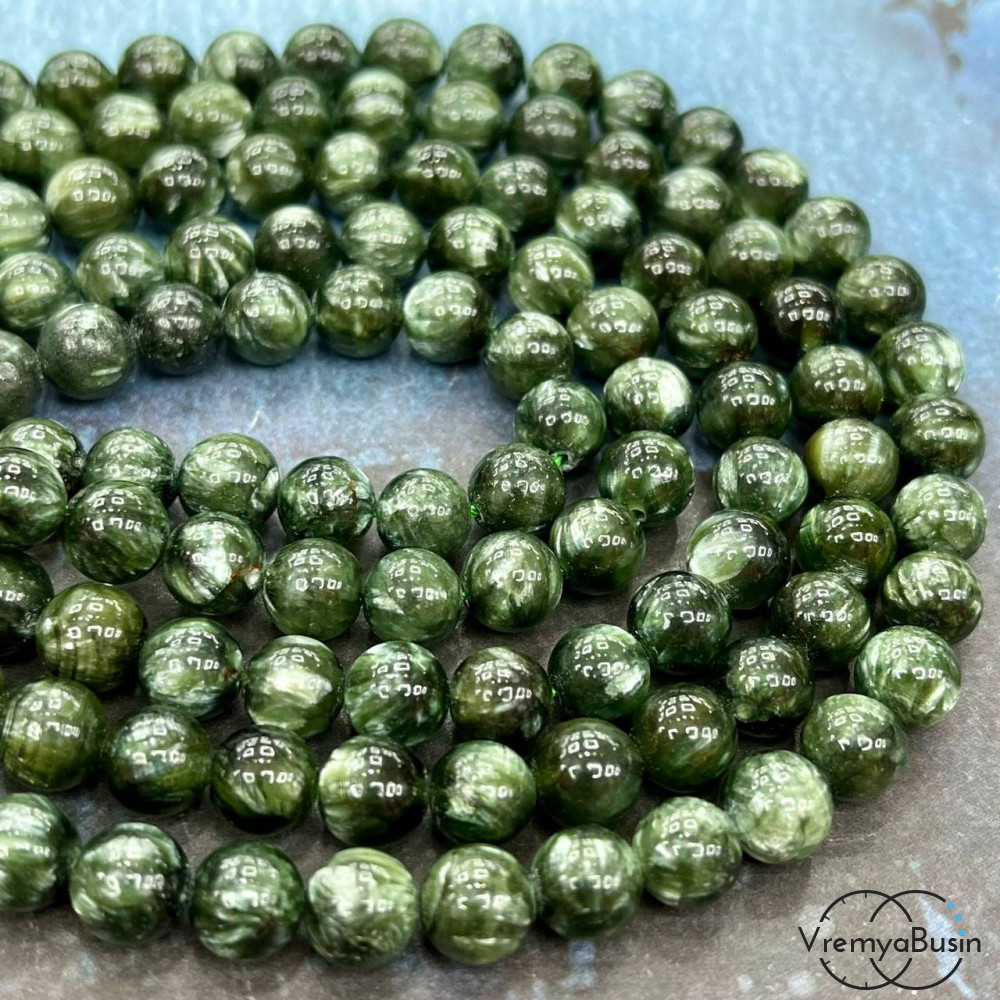 Серафинит натур., шарик гладкий, 8 мм (1/2 нити, ок. 24 шт.)