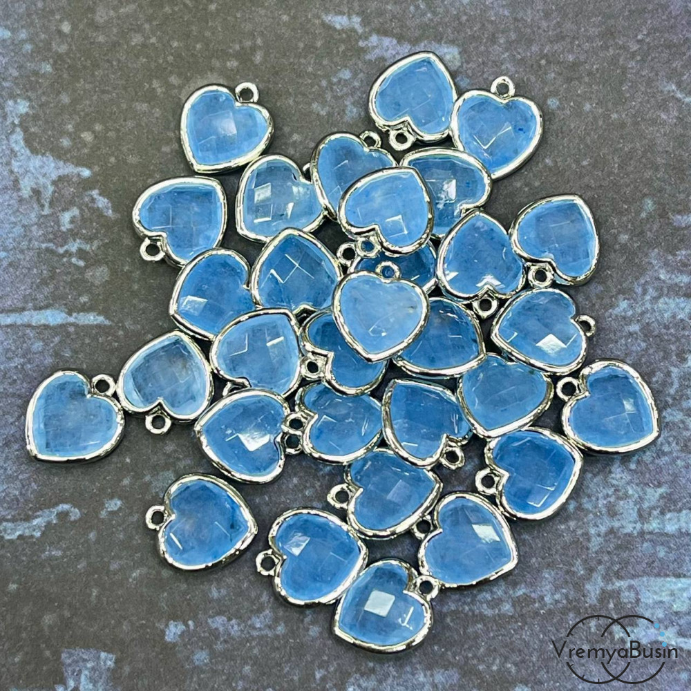 • Кварц тонир. под аквамарин.   Подвеска сердце 13 мм в оправе цв. родий (1 шт.)