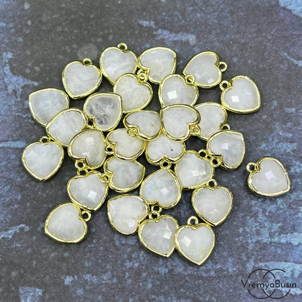 • Лунный камень натур. Подвеска сердце 13 мм в оправе цв. золото (1 шт.)