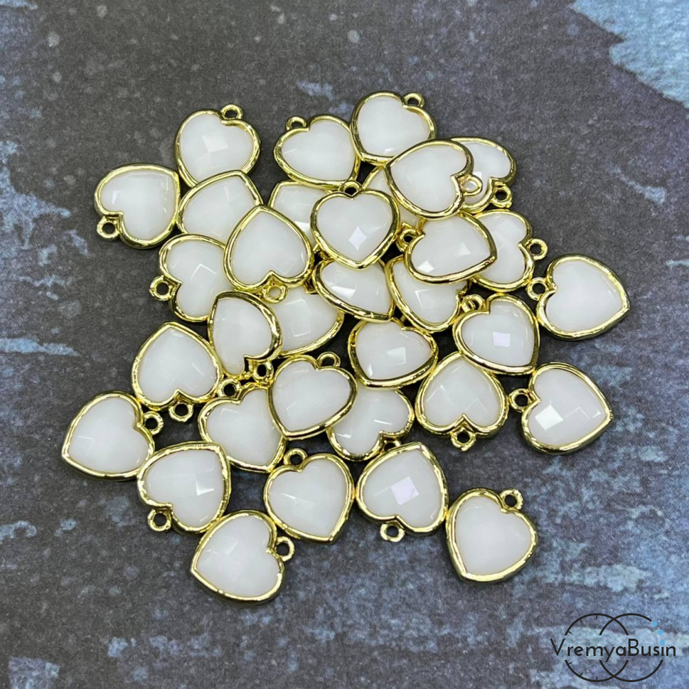 • Агат белый. Подвеска сердце 13 мм в оправе цв. золото (1 шт.)