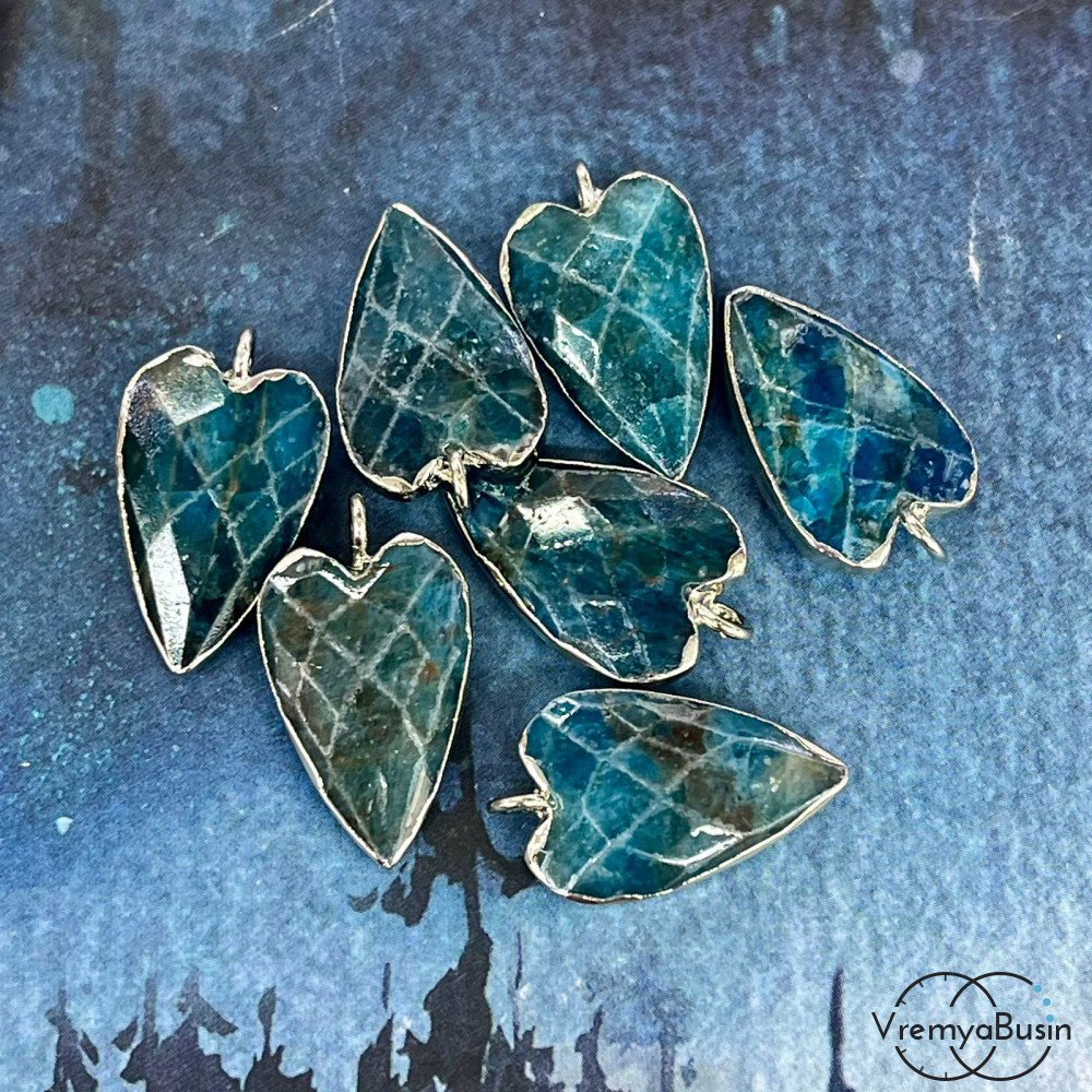 Апатит. Подвеска «Сердце» из камня в оправе цв. родий, ок. 22х13х6 мм (1 шт.)