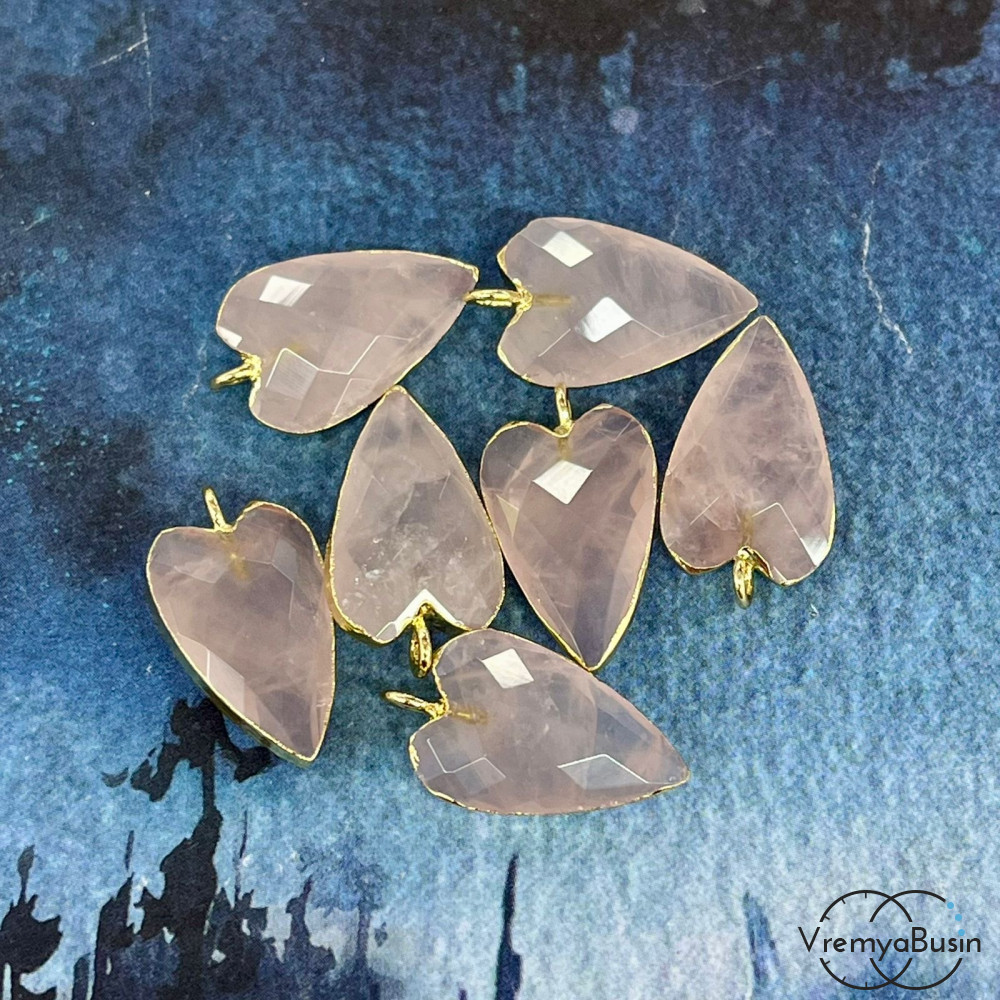 Розовый кварц. Подвеска «Сердце» из камня в оправе цв. золото, ок. 22х13х6 мм (1 шт.)