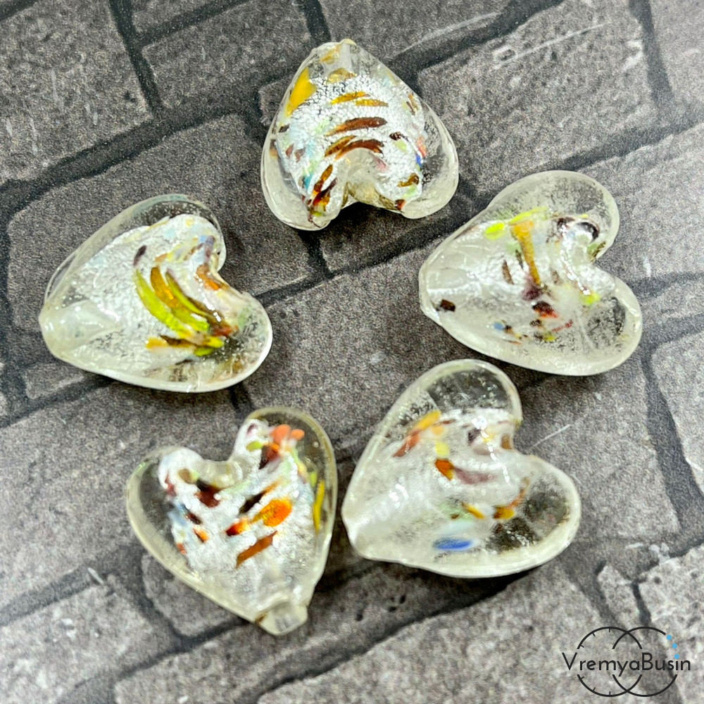 Бусина стеклянная фольгированная "Сердце", 15 мм (1 шт.)
