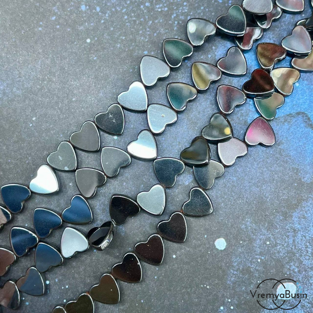 • Гематит, сердце плоское 10 мм, цв. черный (1/2 нити, ок. 20 шт.)