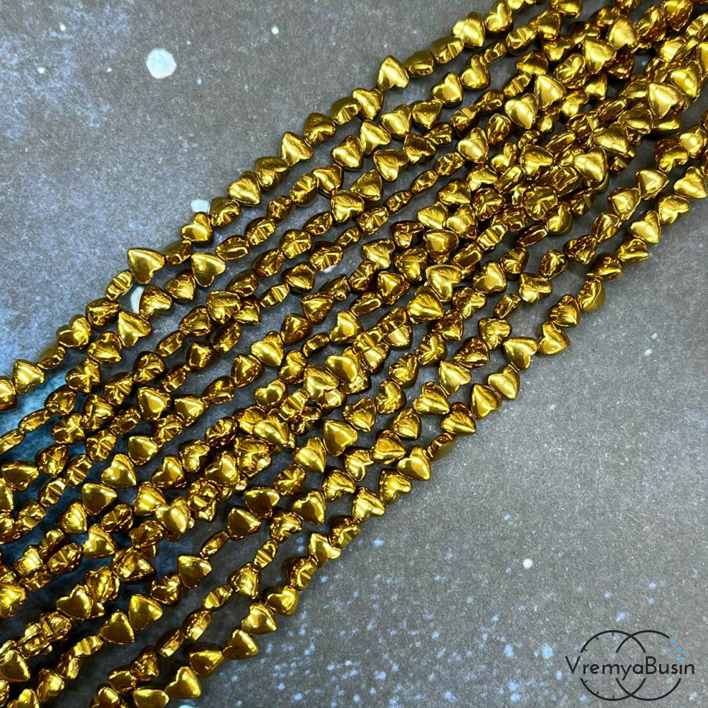 • Гематит, сердце плоское 4 мм, цв. золото (1/2 нити, ок. 50 шт.)