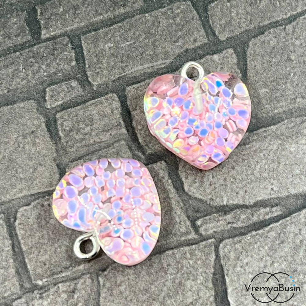 Подвеска из акрила "Сердце с блестками", 18х17х7 мм, цв. розовый (1 шт.)