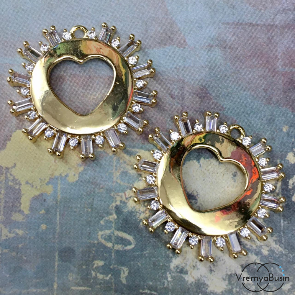 • Подвеска из латуни с позолотой и фианитами "Сердце" 20х20 мм (1 шт.)