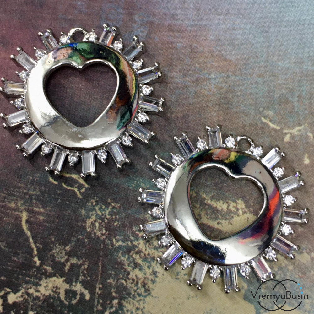 Подвеска из латуни с родиевым покрытием и фианитами "Сердце" 20х20 мм (1 шт.)