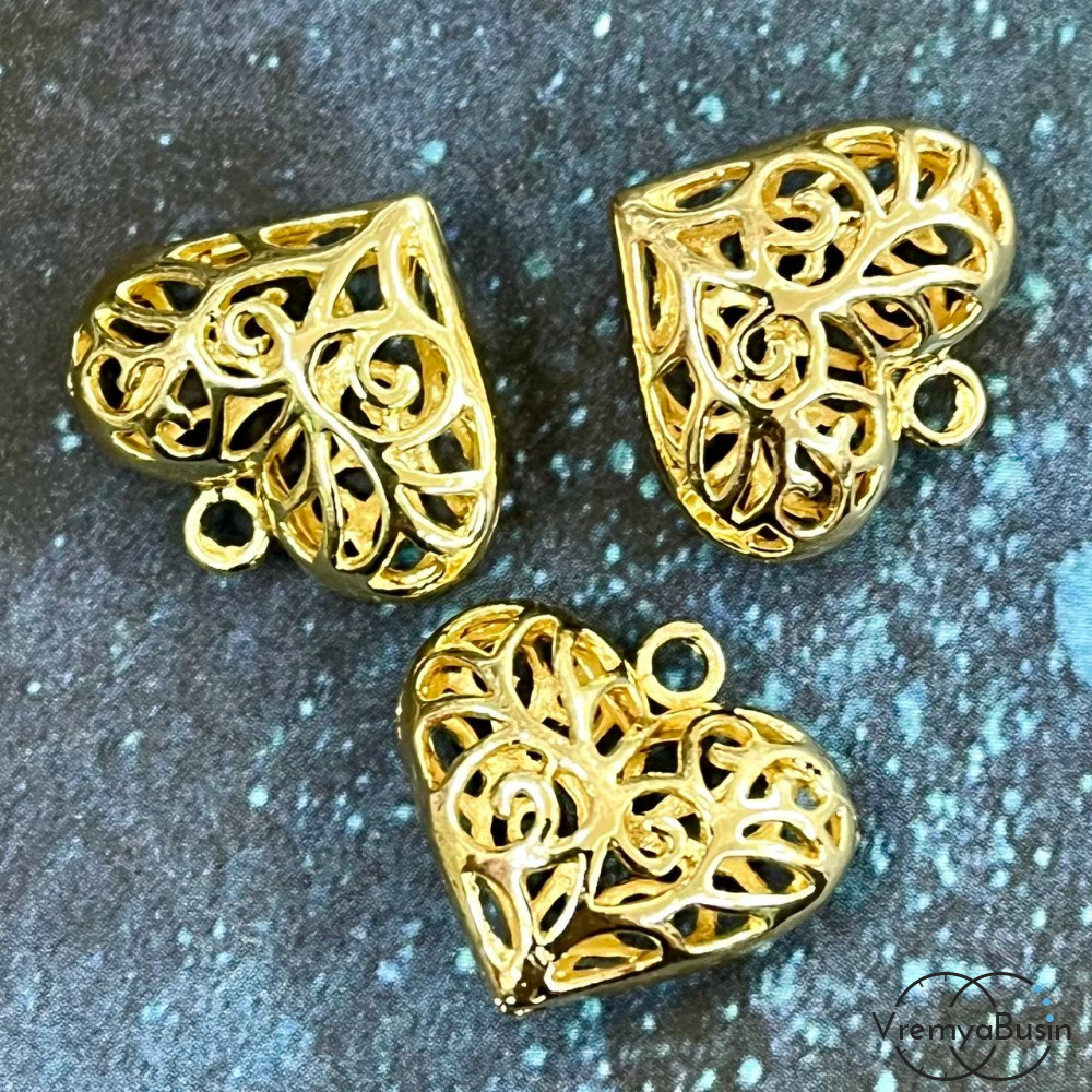 Подвеска "Сердце", 18х16х7 мм, латунь с позолотой (1 шт.)