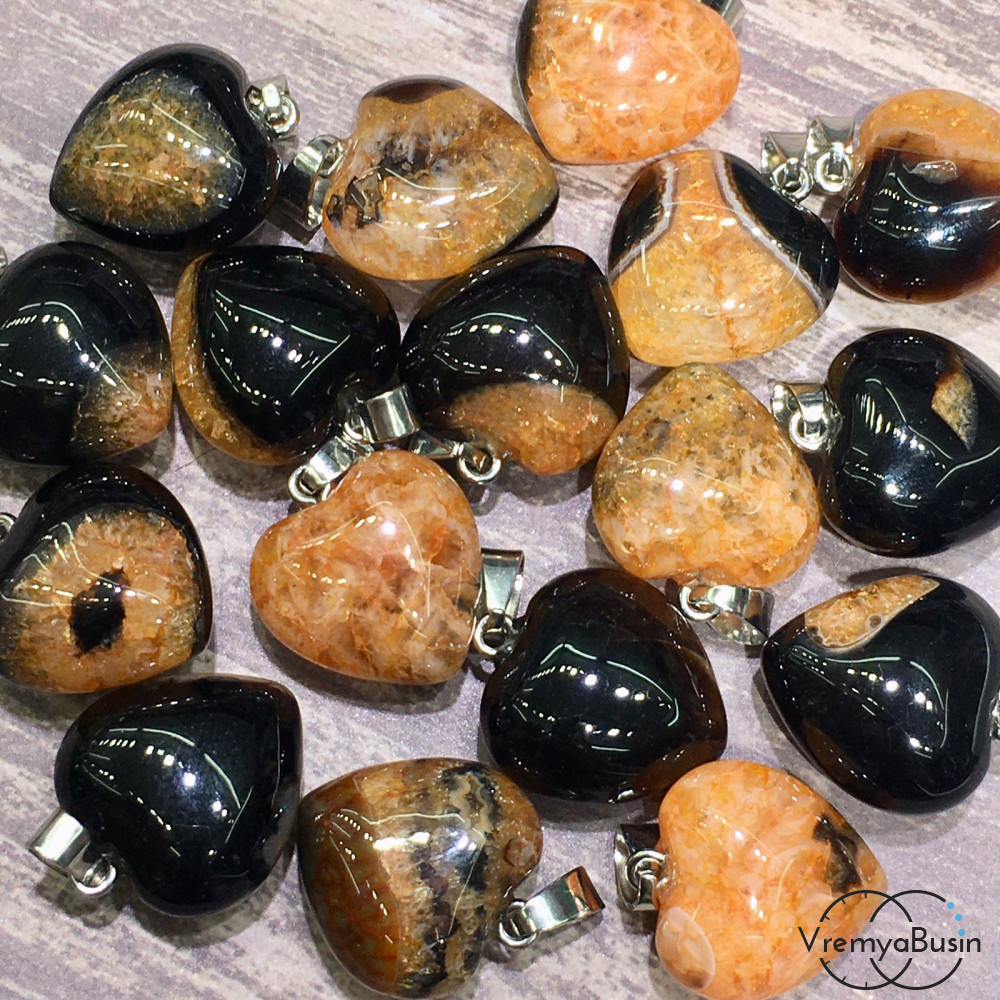 • Агат тонир., оранжево-черный. Подвеска объемное сердце, 12х20х20 мм (2 шт.)