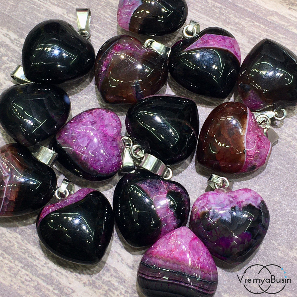 • Агат тонир., малиново-черный. Подвеска объемное сердце, 12х20х20 мм (2 шт.)