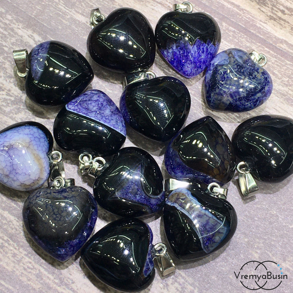 • Агат тонир., фиолетово-черный. Подвеска объемное сердце, 12х20х20 мм (2 шт.)