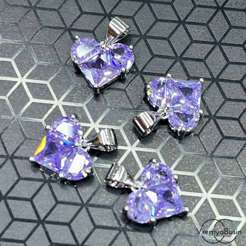• Подвеска с фианитами, сердце 12 мм, латунь с родиевым покрытием  (1 шт.)