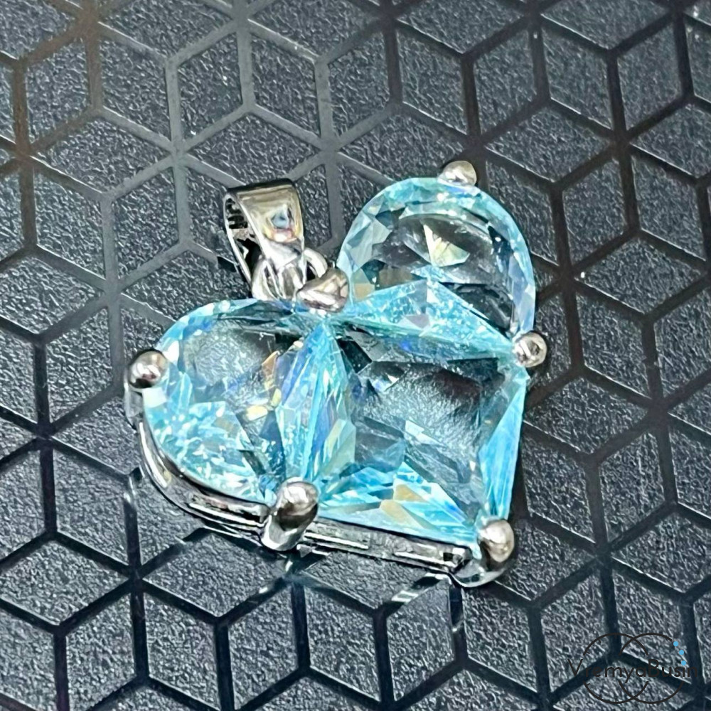 • Подвеска с фианитами, сердце 20 мм, латунь с родиевым покрытием  (1 шт.)