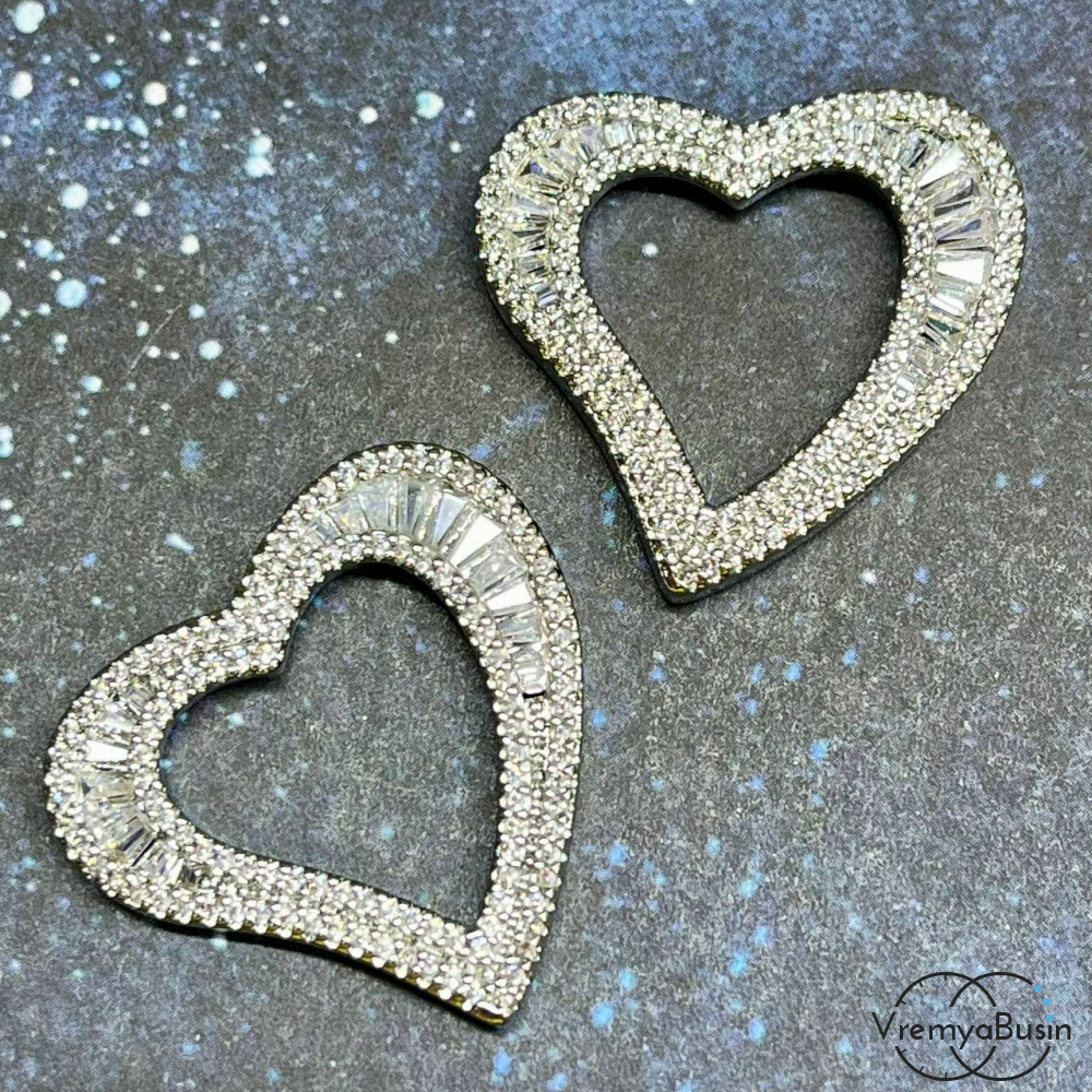 Подвеска "Сердце", 28 мм, из латуни с родиевым покрытием и фианитами (1 шт.)