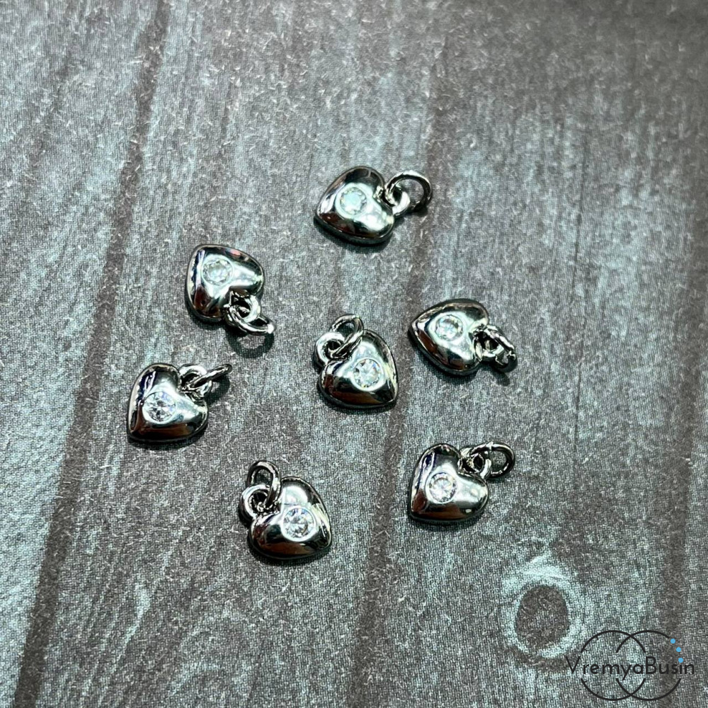• Подвеска "Сердце", 7х8 мм, из латуни с родиевым покрытием и фианитами (1 шт.)