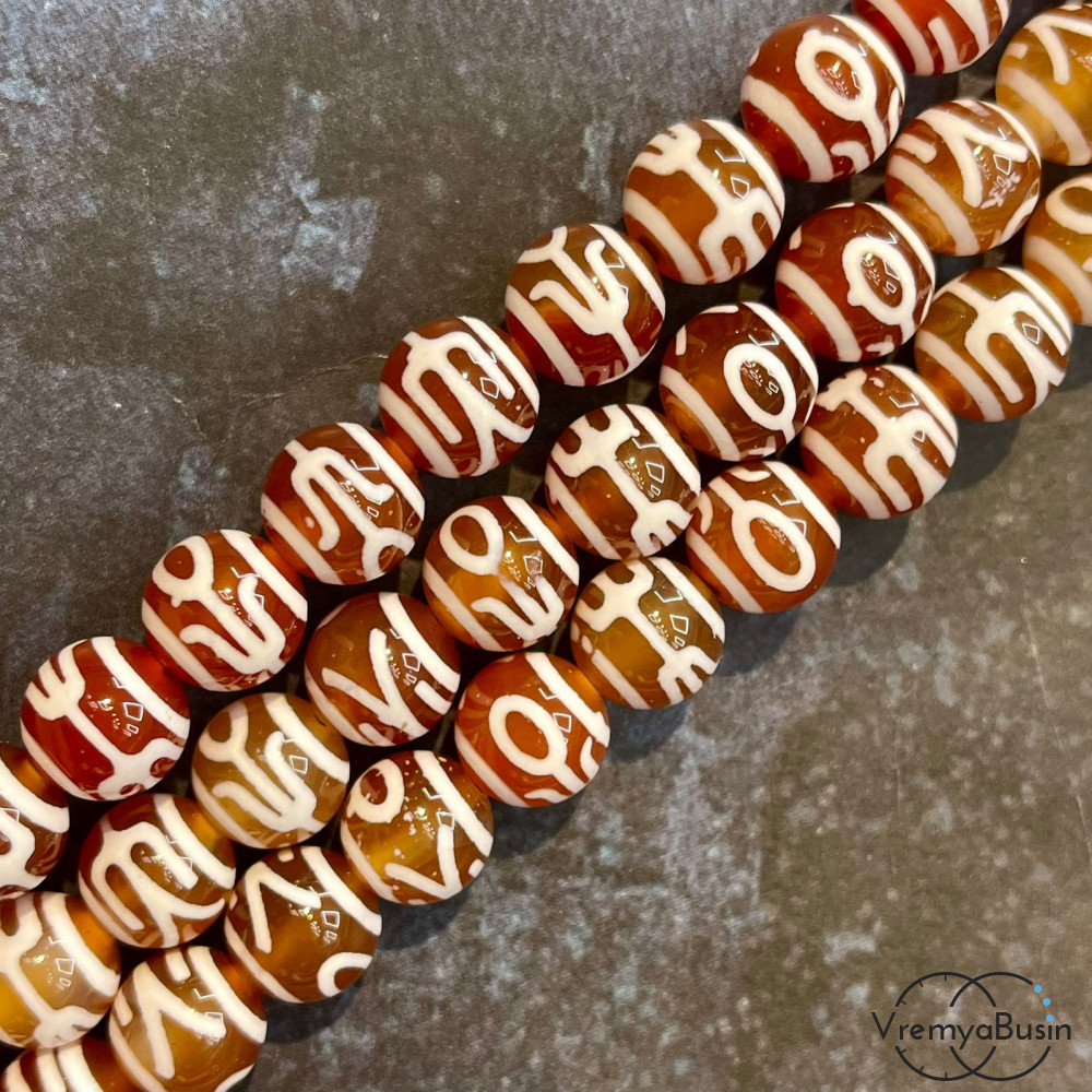 • Бусины Дзи из сердолика, шарик гладкий 10 мм (1/2 нити, ок. 19 шт.)