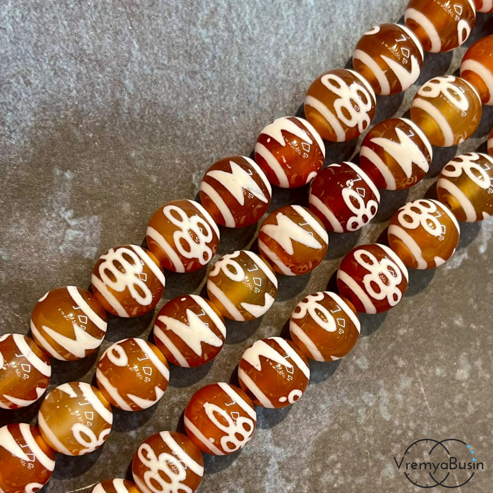 • Бусины Дзи из сердолика, шарик гладкий 10 мм (1/2 нити, ок. 19 шт.)