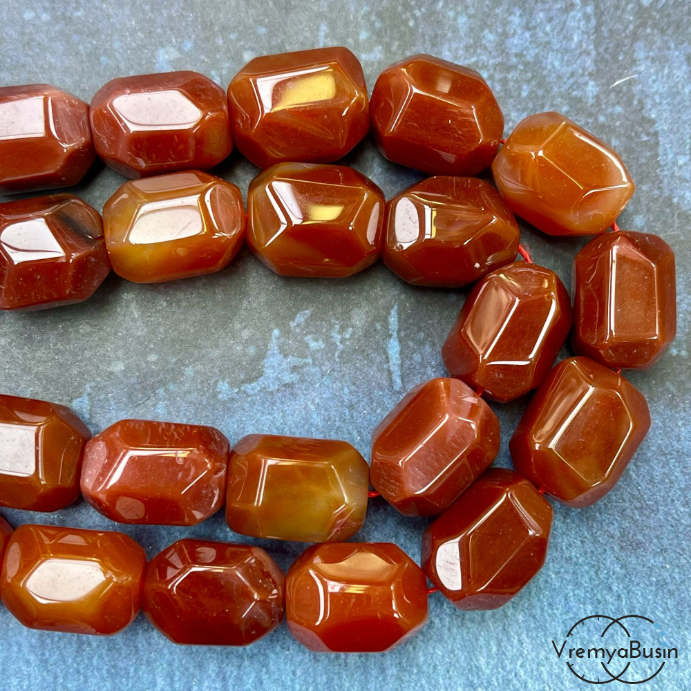 • Сердолик,   крупные овальные граненые бусины, ок. 20х15 мм  (1/2 нити, ок. 8 шт.)