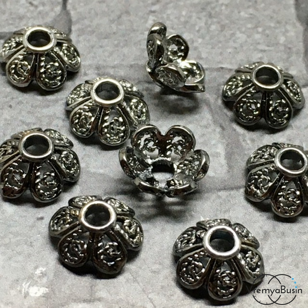 • Шапочки для бусин 8 мм, латунь с чёрным родиевым покрытием (10 шт.)