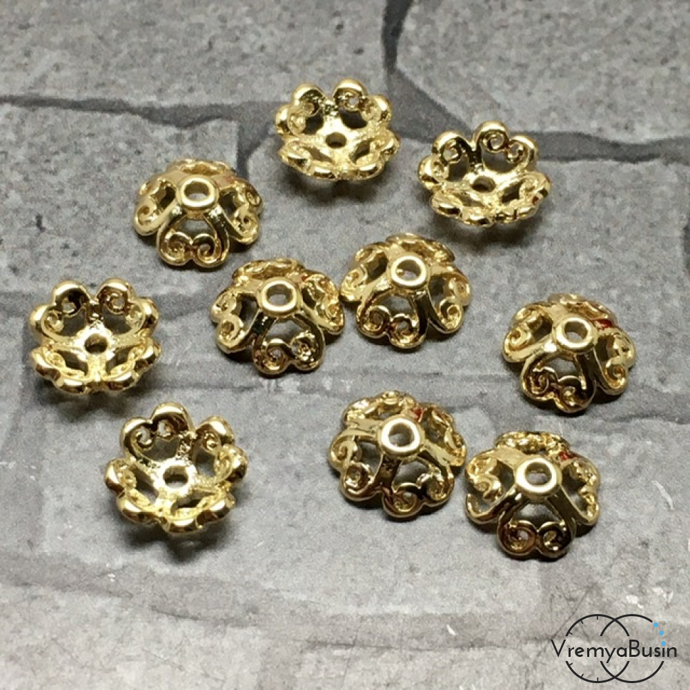Шапочки для бусин 8 мм, латунь с позолотой (10 шт.)