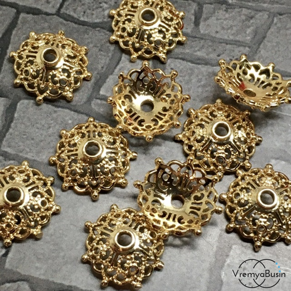 Шапочки для бусин 14 мм, латунь с позолотой (10 шт.)