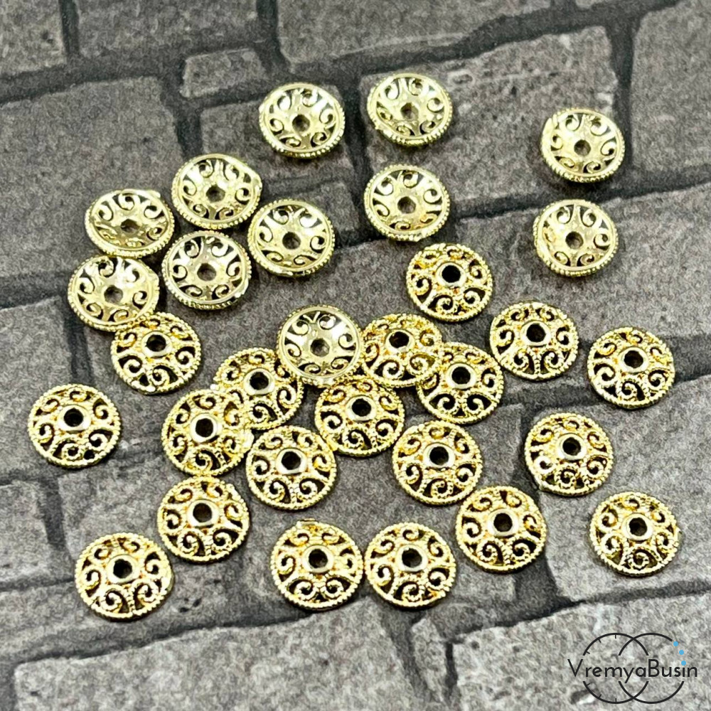 Шапочки для бусин 6 мм, латунь с позолотой (10 шт.)