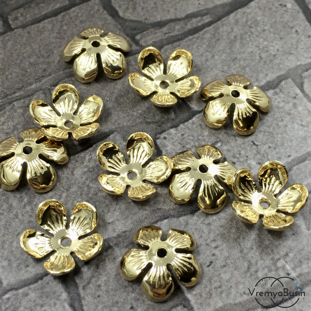 Шапочки для бусин, 10 мм, латунь с позолотой (10 шт.)