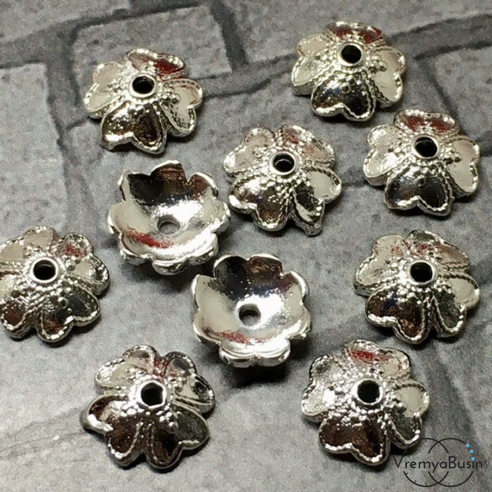 Шапочки для бусин 8 мм, латунь с родиевым покрытием (10 шт.)