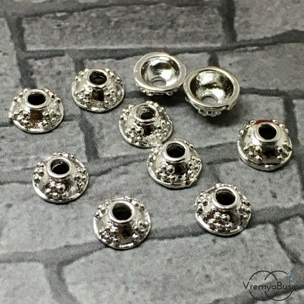 Шапочки для бусин 6 мм, латунь с родиевым покрытием (10 шт.)